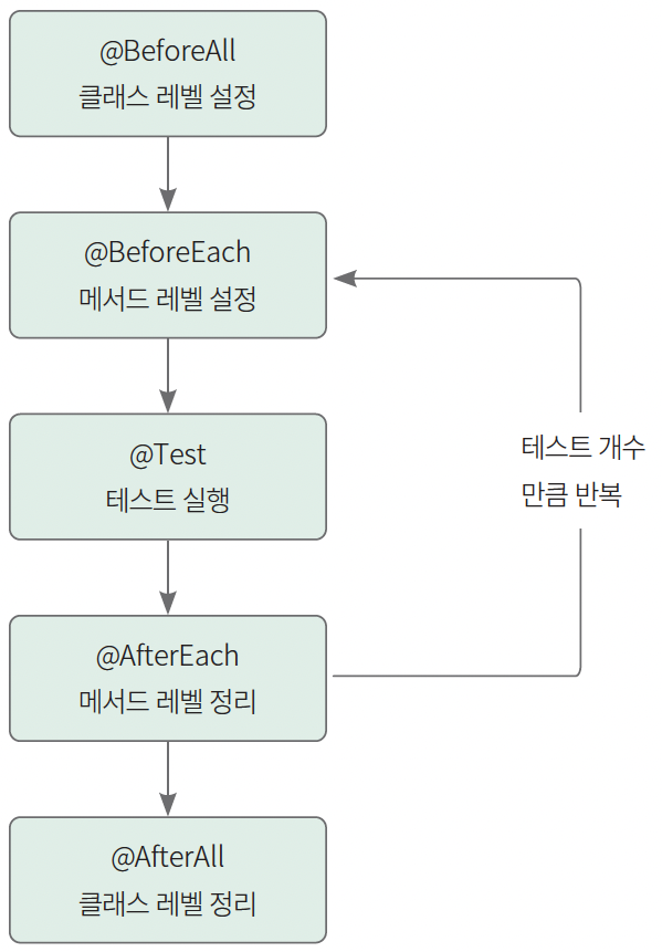 *이 애너테이션은 전체 테스트 실행 주기에서 한 번 만 호출되어야 하기 때문에 메서드를 static으로 선언해야 함