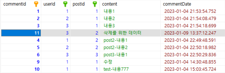 comment table에서 해당 데이터를 삭제하려고 한다. 테스트는 postman을 통해 진행