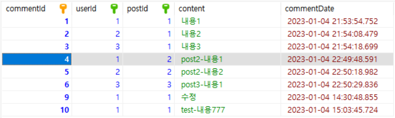 // commentDate 값이 일치하는 데이터들이 있을 수 있음. -> unique한 값을 갖고 생성순으로 ID값이 증가하는 PK로 정렬